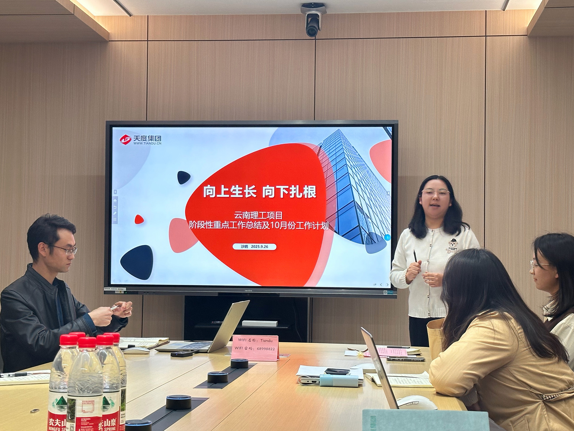 9月26日,云南天度科技產(chǎn)業(yè)發(fā)展有限公司階段總結(jié)暨工作部署會(huì)議在集團(tuán)總部順利召開(kāi)。本次會(huì)議以“凝心聚力,共繪藍(lán)圖”為主題,系統(tǒng)梳理產(chǎn)教融合發(fā)展事業(yè)的前期工作成果,明確下一階段發(fā)展目標(biāo)與實(shí)施路徑。天度數(shù)字商務(wù)產(chǎn)業(yè)學(xué)院及高校校企合作項(xiàng)目的管理及教師團(tuán)隊(duì)齊聚一堂,集團(tuán)總經(jīng)理陳俊園出席會(huì)議并作重要工作安排部署。